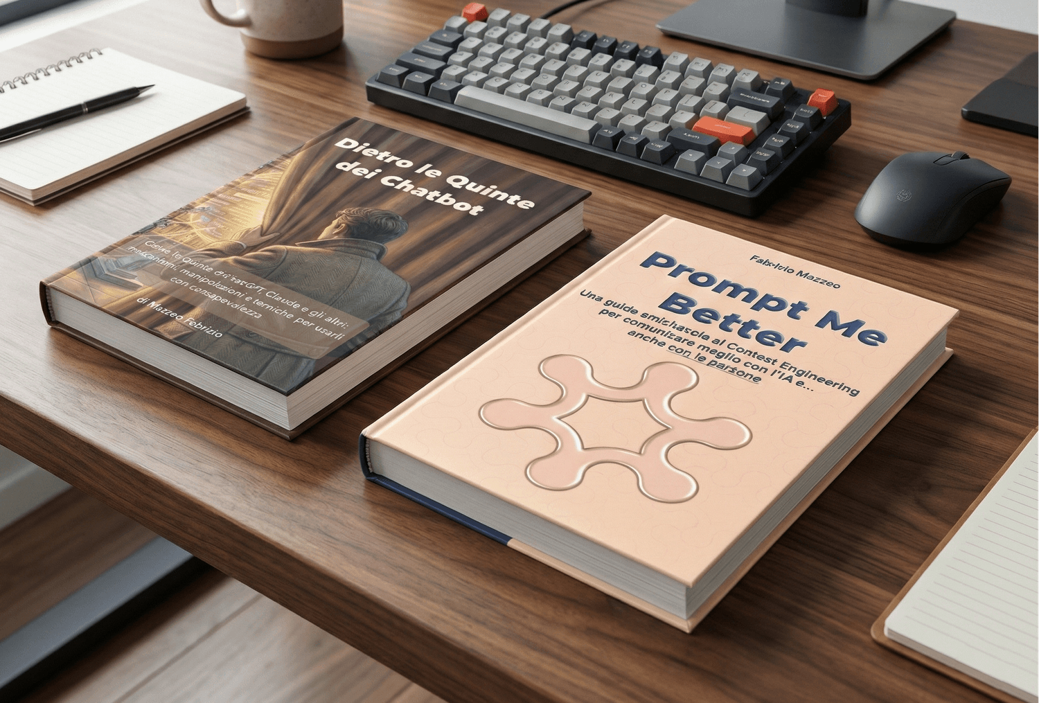 I miei due libri: "Prompt Me Better" insegna il context engineering: come parlare all'IA per ottenere quello che serve davvero. "Dietro le quinte dei Chatbot" spiega cosa c'è dietro la tecnologia senza tecnicismi, per capire opportunità e limiti reali.